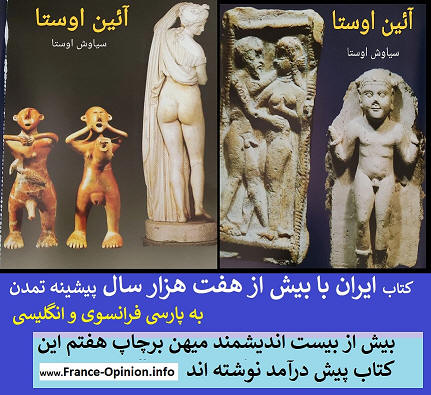 I am a follower of AVESTA! (Zoroastre) From AVESTA, wisdom tendency, kindness, Aryan, Persian, Mithraism to Zoroaster, the messenger of well thinking, well talking and well acting to Manes, a thinker and artist who has drown what Buddha and Jesus had thought…to Mazdak, the first socialist in the world to Cyrus the great whom has been mentioned both in Old Testament and history as the saviour of Jews and one who has written the first human rights’ law and also to the Iranians’ artistic, historic, civilized and thoughtful resistance against Arabs’ attack and Islamic fanaticism by means of the quatrains of scholar Omar Khayyam Neyshapoori and the lyric poems of Hafiz Shirazi … and 7000 years old hills located in Silak Kashan and Pamir plains in Tajikistan and Buddha’s statues in Afghanistan … and fire-temples in Azerbaijan and the burned city in Sistan and Baluchistan… and 7000 years proud history of the people who have lived in Iran’s great plateau by their different culture from Ilamids to Medes. To find out more about the historical precedent of my people and my country and also about our laic and wise thoughts read this book |