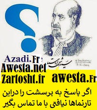 از هم اکنون که اراده کردید تا به بیشماران جهان نو زرتشتی بپیوندید شما پاره ای از پیکره ی کهن همبستگی جهانی فرهنگ اوستایی و نو زرتشتی هستید از ما نخواهید که دیگران را بشما بشناسانیم برای حفظ امنیت و آسایش یارین هر گروهی کسانی را میشناسد که خودش و خودشان آنها را با ما همراه کرده اند و چون همبستگی و پیوستن بما اندیشه است هیچ نیازی به ثبت و درج و کارت شناسایی ندارد اما آگاه باشید که بزودی و آنگاه که جان یاران از گزند پایوران به تفکر جاهلی صحراگردان مصون باشد شما میلیونها انسان آزاده که هر روز یکدیگر را در کوچه و خیابانها و خانه های سراسر جهان میبینید یکدیگر را در آغوش خواهید کشید و امروز هر آنکس که نیکی در پندار و گفتار و کردار دارد و پارسی سخن میگوید و نام پارسی برای خود برگزیده است و از تاریخ هفت هزار ساله بهره میبرد و نشان فروهر را با خود دارد . و اوستا را پیشوا و راهبر خود میداند و بوجود رهبر در هر دورانی باور دارد نو زرتشتی میباشد و یار و همراه و پشتیبان شما میباشد مهربان یار گرامی نخستین گام شما در راه اوستا یاری رسانی به جنبش خردگرایی و اوستایی نوین سرزمین اهورائی اوستا و زرتشت بزرگ میباشد که در مرزهای هیچ کشوری محدود و بسته نمیشود بدین رو از هم اکنون تلاش خود را برای گسترش اندیشه های پیام آوران خرد آغاز کرده و از هر راه و شیوه ای که میتوانید در پخش اندیشه ها و گفتار و سخنها و کتابها و مقالات تلاش کنید با کلیک در اینجا به لینکهایی میرسید که میتوانید هر روز بخشی از آنها را از طریق اینترنت و ایمیل و تویوتر و فیسبوک و دیکر راه بطور مرتب پخش کنید و برای آگاهی دیگران این دریای دانش را به اشتراک بگذارید مهربان یاران گرامی با کلیک در اینجا پرسشهای خود را مطرح کنید ما به همه آنها پاسخ میدهیم zartosht@zartosht.fr |