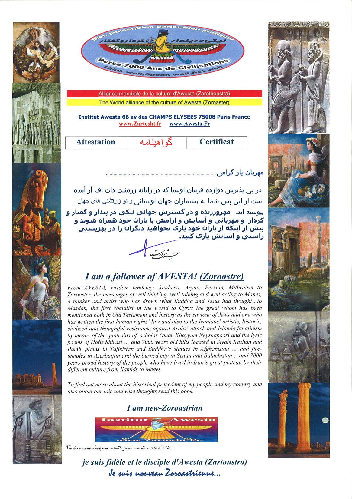 religion. Selon Siavash, l'Avesta du zoroastrisme est